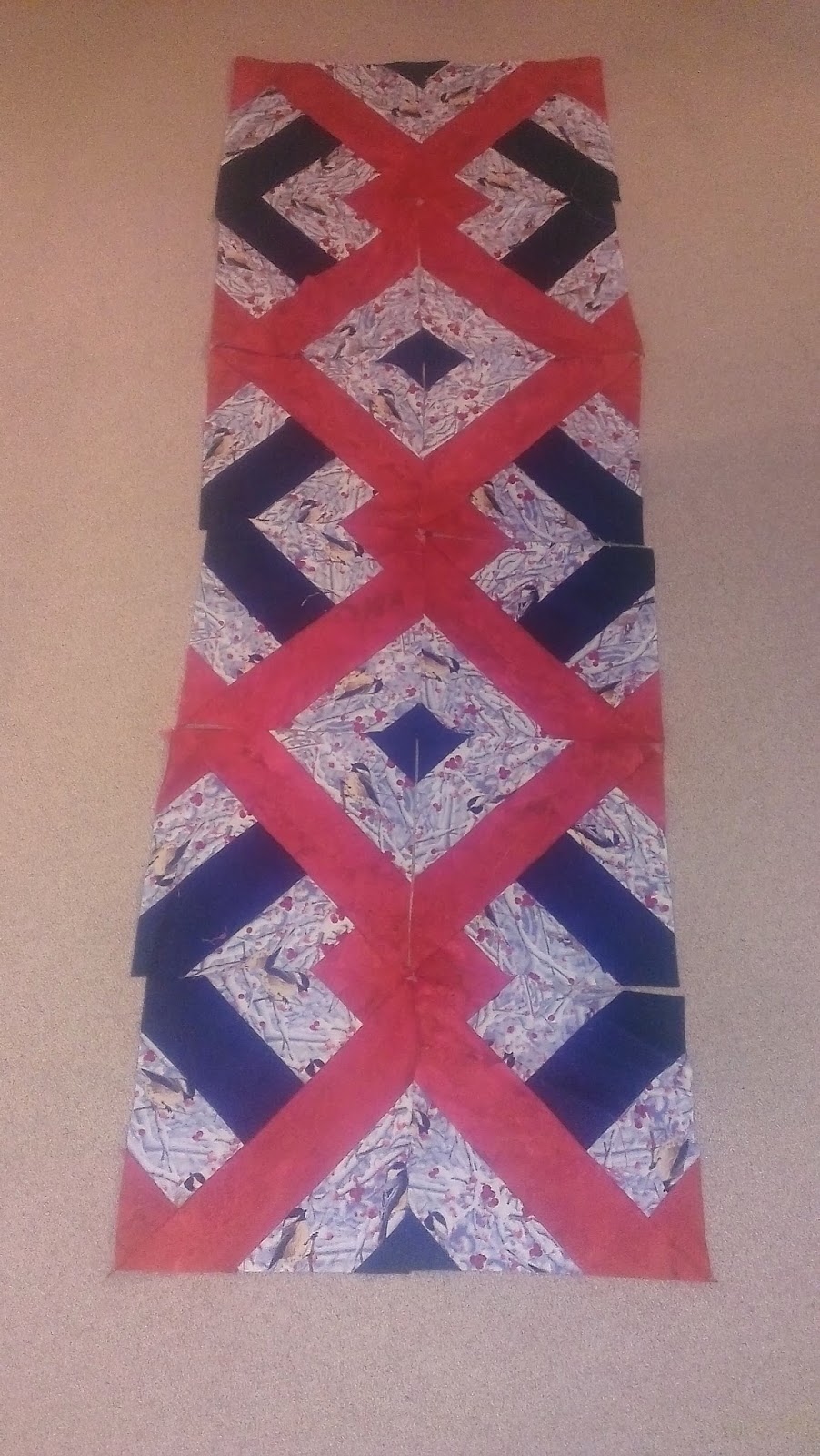 Und heute schon gleich eingeweiht und einen Tischläufer angefangen, den ich mir bei Zicki beim Nähtreffen in Plön abgeguckt habe :).